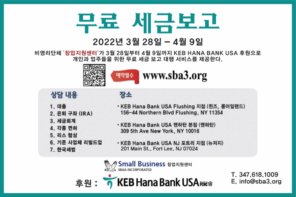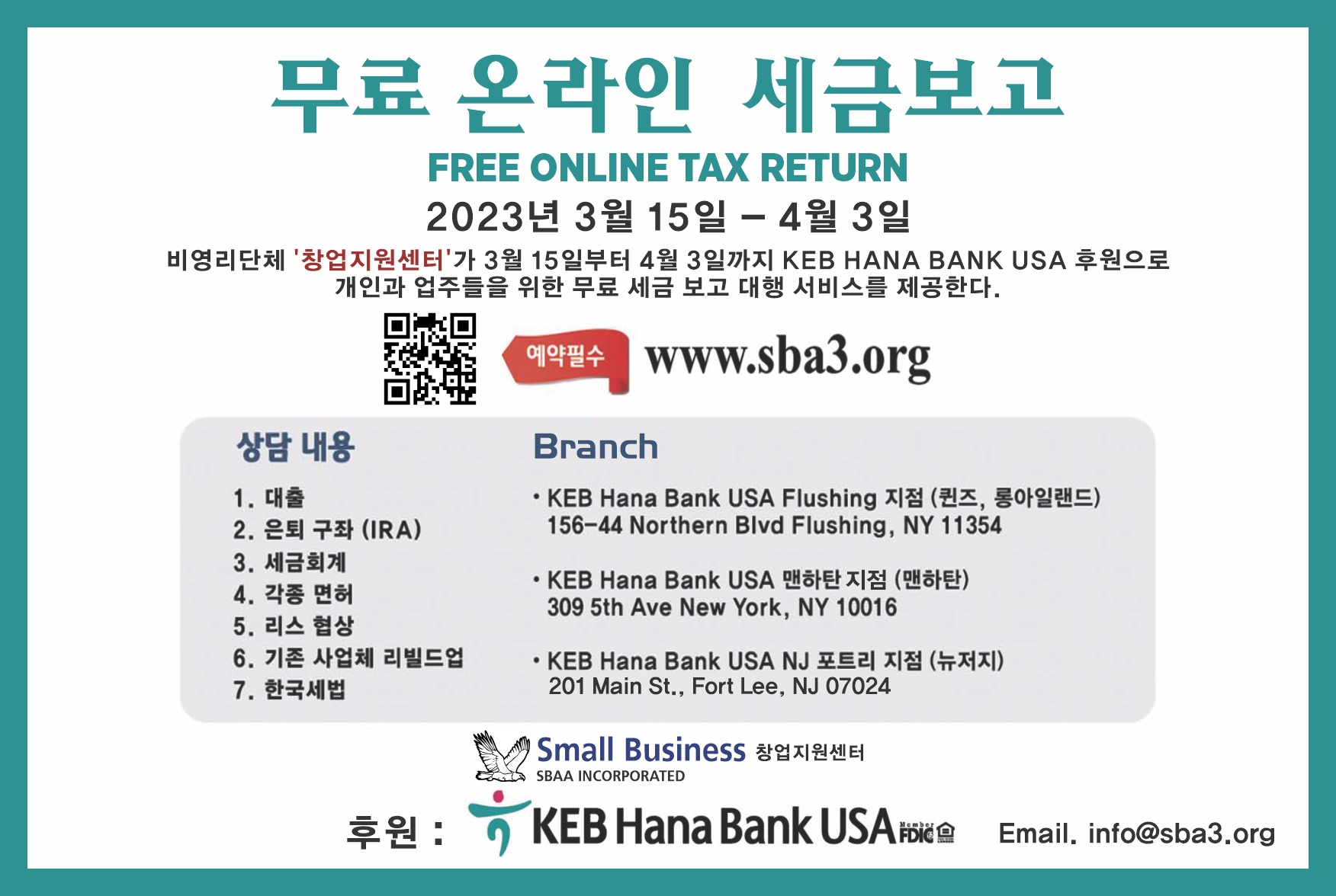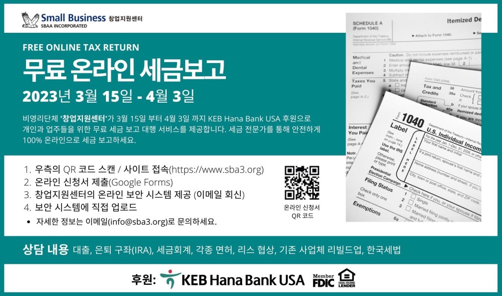 온라인 Tax Return에 관하여 질문이 있으면 이메일(info@sba3.org) 로 문의하면 됩니다
