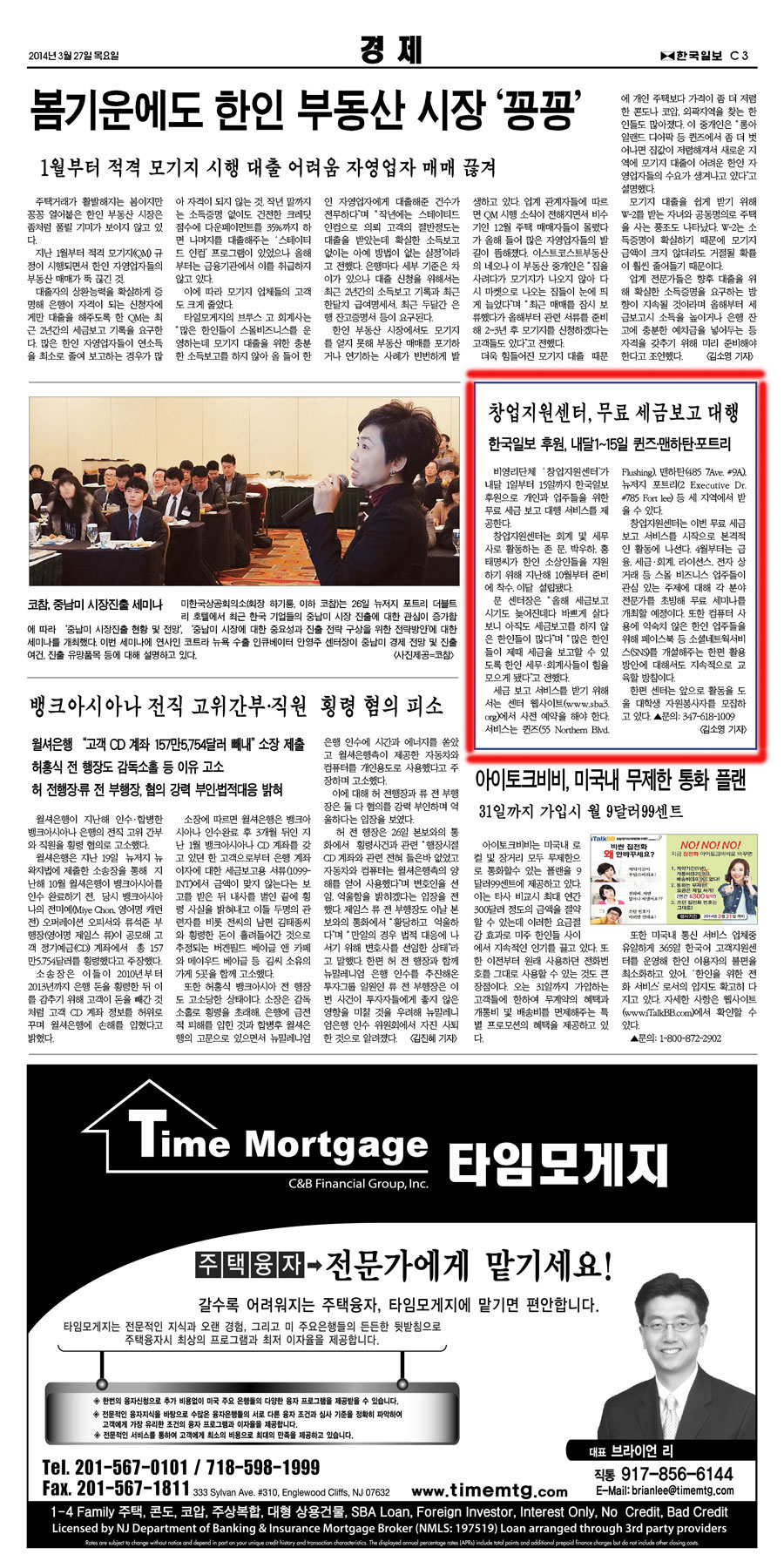 한편 매년 세금보고 시즌, 본보 후원으로 저소득층을 위한 무료 세금보고 대행 서비스를 제공하고 있는 스몰비즈니스창업지원센터는 한인사회 경기 활성화, 특히 소기업 경기 활성화를 지원에 주력하고 있다.